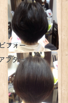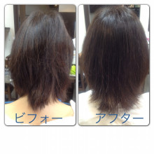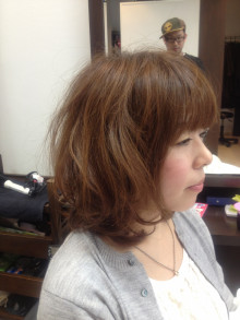 こちらの画像はK様なのですが、春らしいスタイルにするために、パーマの残りを活かしたスタイルで、より動きが見えるように、ハイライトを入れました